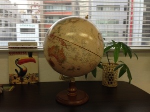地球儀を買って、事務所に置きました。