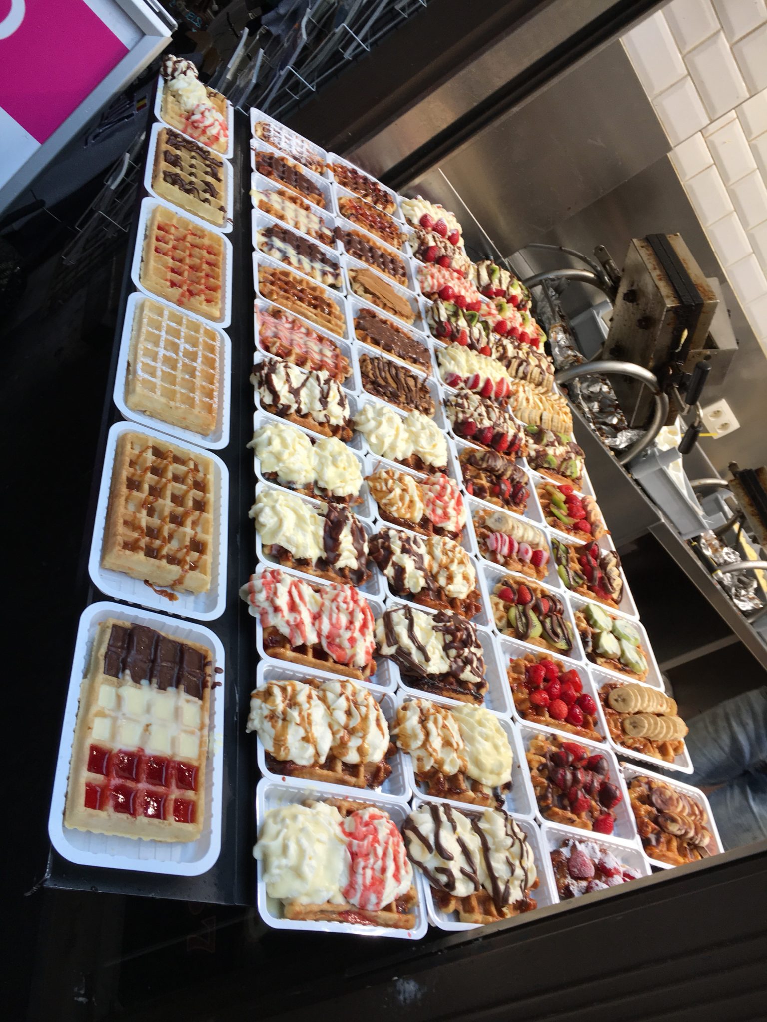 最後に、これも名物のワッフルです。ただ、これらはごってりしすぎで甘過ぎです、、シンプルなやつは美味しいです。
